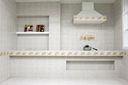2.廚房間的操作環(huán)境是高溫環(huán)境,選擇瓷磚的色彩應當以淺色和冷色調(diào)為主,譬如白色、淺綠色、淺灰色等色澤。這樣的色彩會令人在高溫條件下感受到春天的氣息和涼意,并且,淺色調(diào)能令人感覺空間在擴大延伸,避免了深色調(diào)在狹小的空間里使人感到沉悶和壓抑。