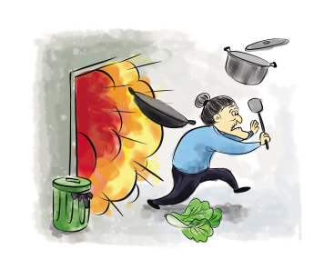 餐廳廚房冒大火,皆因油煙機垢太多