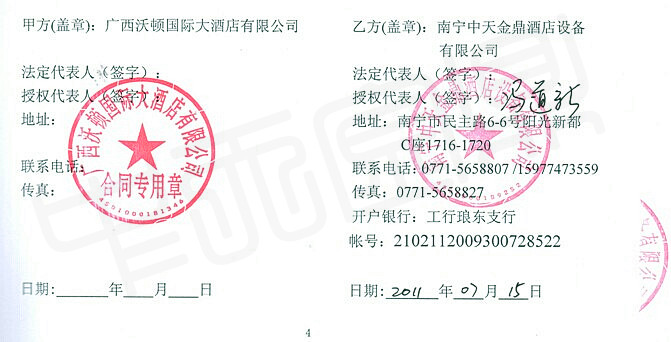 廣西沃頓國際大酒店---廚房工程項目(簽訂合同)